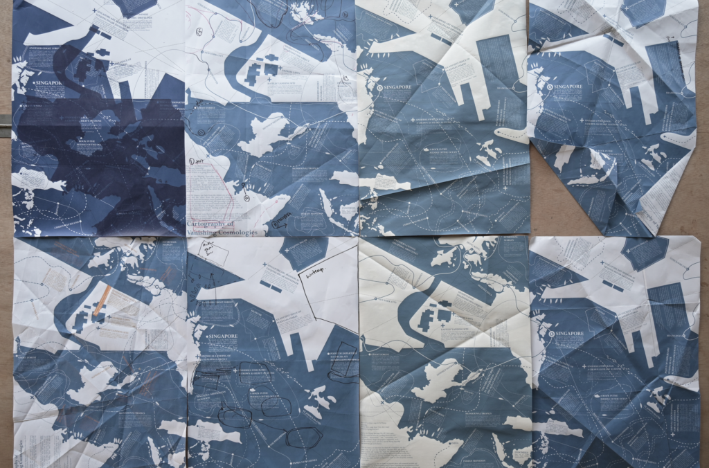 3. Fold the map in more ways, align your trajectory onto new dotted pathways, and discover more accidental cosmologies formed in the process of folding and unfolding the map. See if you can wound up at the Empress Lawn, where the Wayang Spaceship moved to from the Singapore Art Museum at Tanjong Pagar Distripark. Take these instructions as mere recommendations on how to use the map. You should allow yourself the opportunity to select a different point to start, fold the map differently, follow different lines, and stumble into other cosmologies.