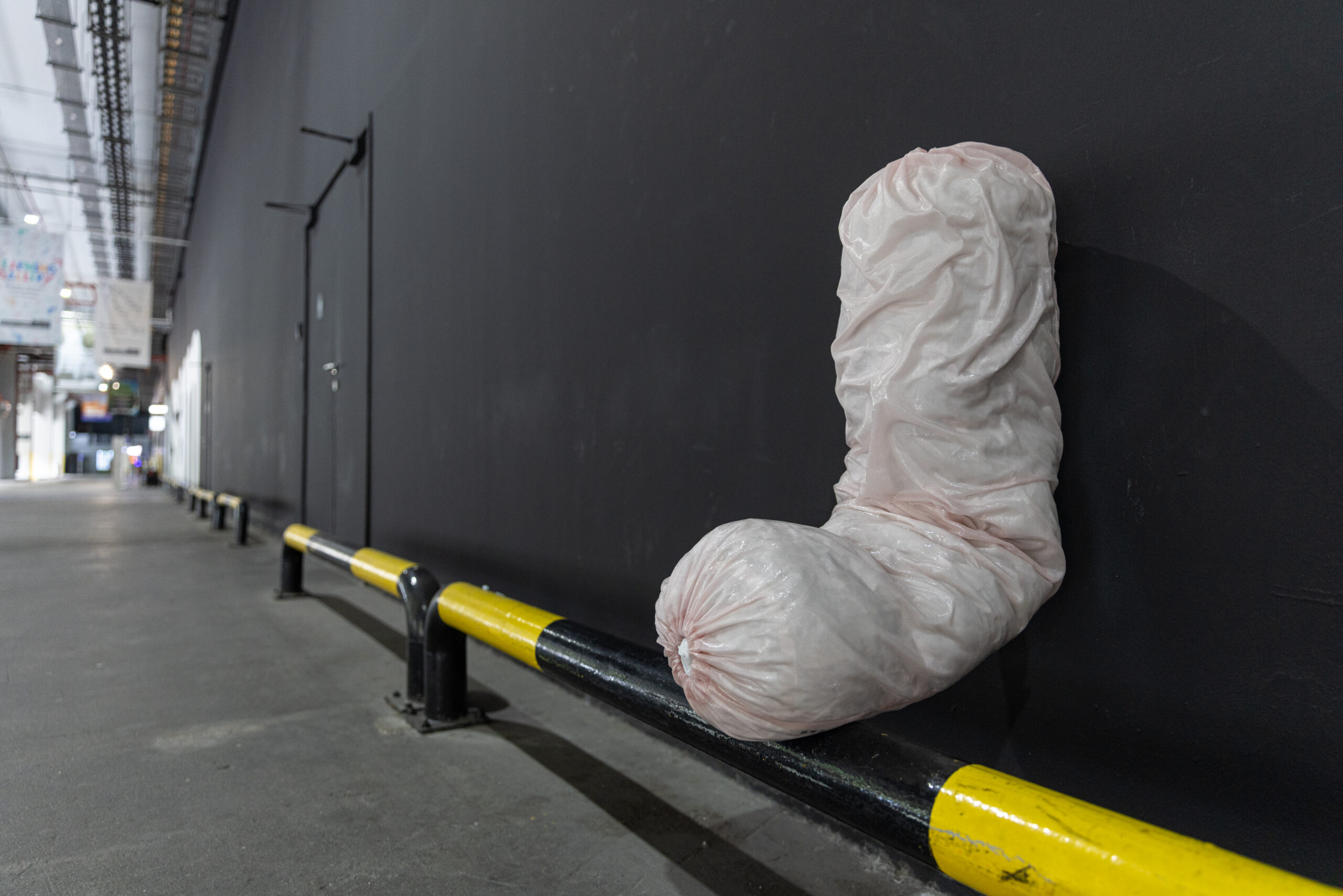 Insomniac States is a series of sculptural interventions that respond to the restlessness of Tanjong Pagar Distripark. As a functioning logistics and arts hub, the Distripark is a place of constant movement, where trucks unload cargo, forklifts navigate narrow lanes and workers cross paths. Modelled after objects of rest—pillows, bolsters and cushions that resemble mattresses—the sculptures are scattered across the site, slumped, wedged or nestled into crevices. In a setting defined by function and flow, Chong inserts a quiet interruption: a call to pause.