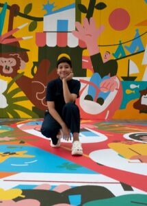Aida (Yellow Mushmellow) is a visual artist whose works in colourful installations, murals and textile design. She believes in seeing magic in everyday things.