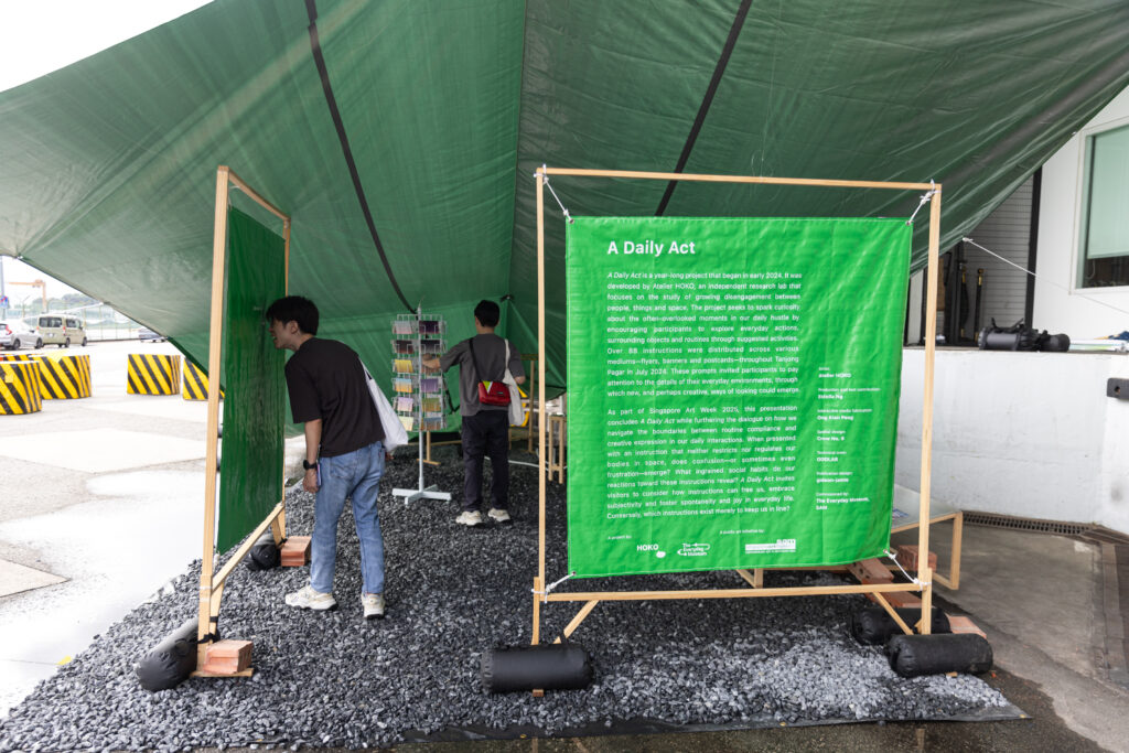 A Daily Act is a year-long project by Atelier HOKO, commissioned by The Everyday Museum, a public art initiative by Singapore Art Museum. In July 2024, the project explored the nature of public art and daily routines through over 80 prompts distributed across Tanjong Pagar via banners, flyers and postcards. Each prompt invited public responses, written or performed. Reflecting on these responses, the creator turned their focus to the concept of “instructions” and observed a key insight: we perform instructions daily, often without realising it.