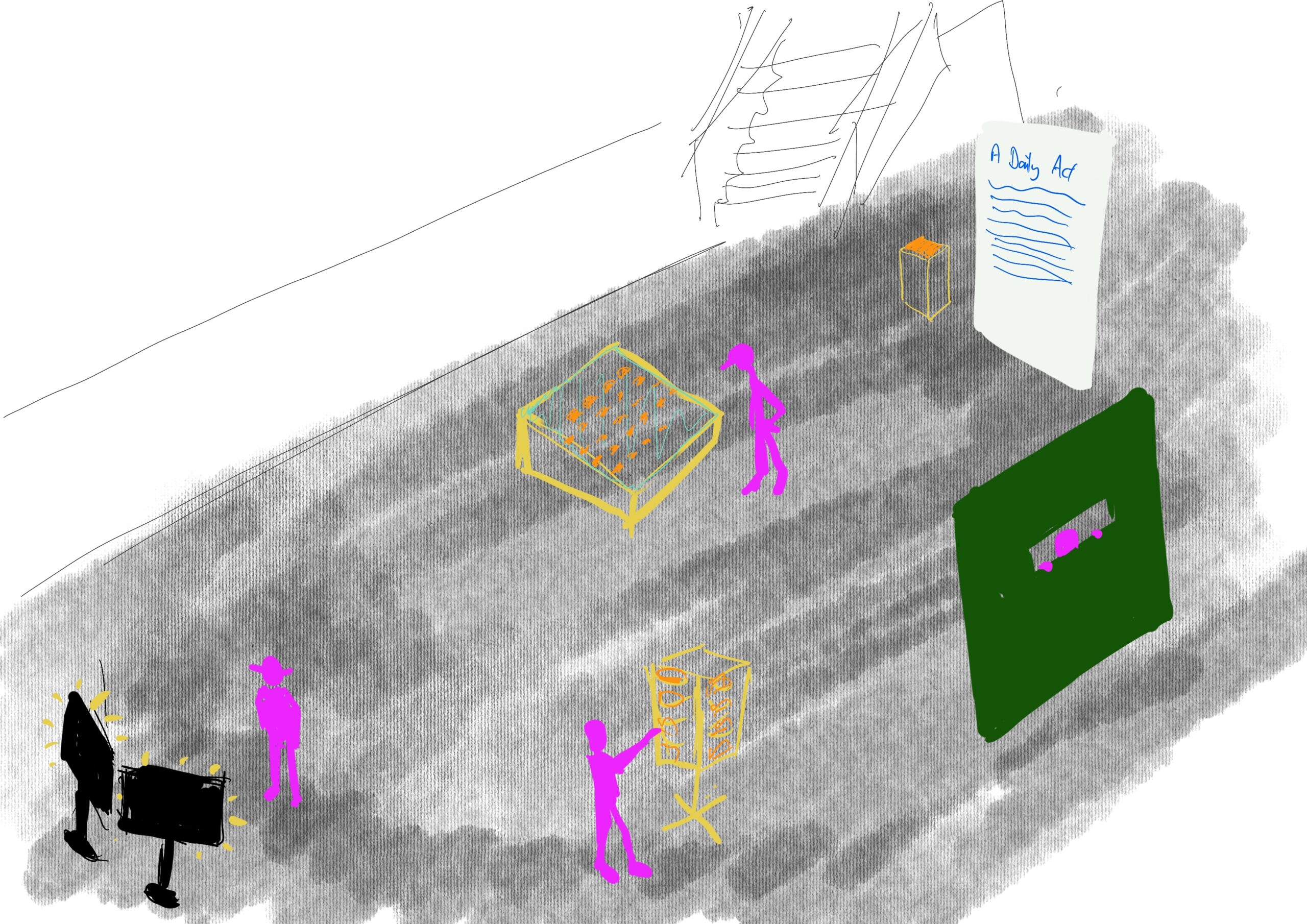A Daily Act focuses on everyday, mundane life occurrences. Participants are encouraged to explore the emotional nuances of their daily routines, whether at home or on the streets. As they go about a regular day, some individuals may encounter instructions; they may walk past them on their way to the train station or pause to observe a postcard while enjoying their coffee. Over time, these prompts may lead their perceptions to shift, senses to sharpen and movements to become more deliberate.