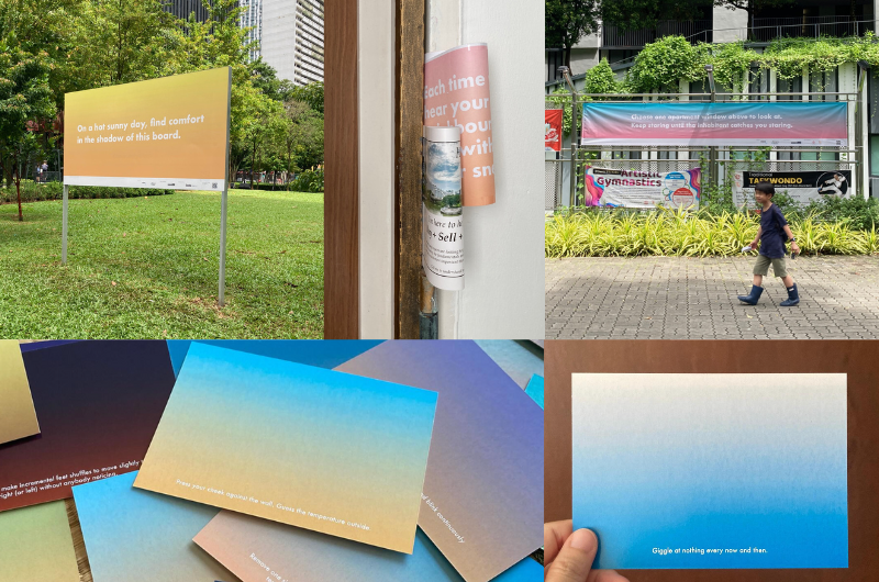Motivated by a desire to introduce poetry into daily lived experiences within the city, A Daily Act asks: Can the banal become remarkable? Can the ordinary become extraordinary? Widely distributed as site-specific instructions across Tanjong Pagar, the project aims to evoke an aesthetic experience rooted in participants’ willingness to engage.